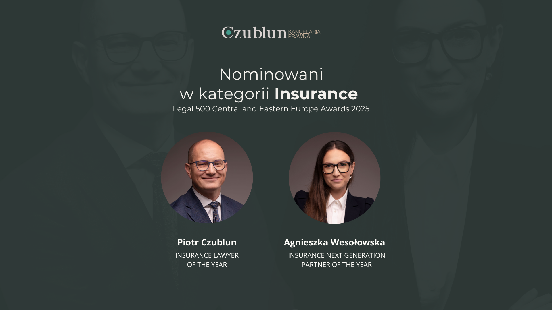 Piotr Czublun i Agnieszka Wesołowska nominowani w kategorii Insurance – Legal 500 Central and Eastern Europe Awards 2025